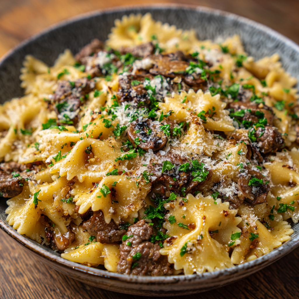 Garlic Butter Bowtie Pasta with Beef Perfection