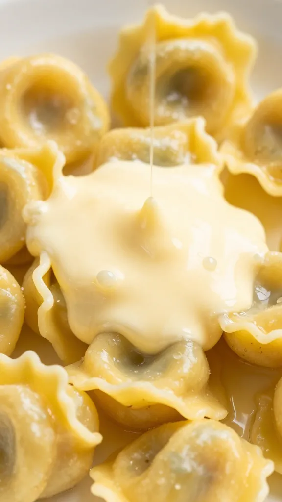 Any stuffed pasta works—ravioli, agnolotti, even gnocchi in a pinch. But tortellini’s shape holds the sauce best, FYI.