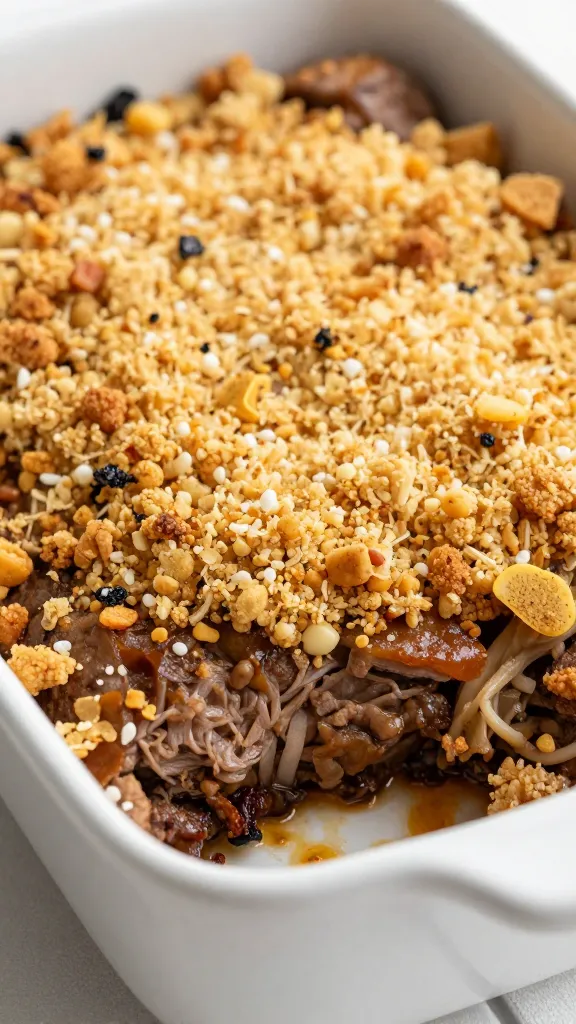 Mix melted butter with Panko and a pinch of garlic powder. Sprinkle it over the mac and cheese layer. This is what turns “good” into “I need seconds immediately.”